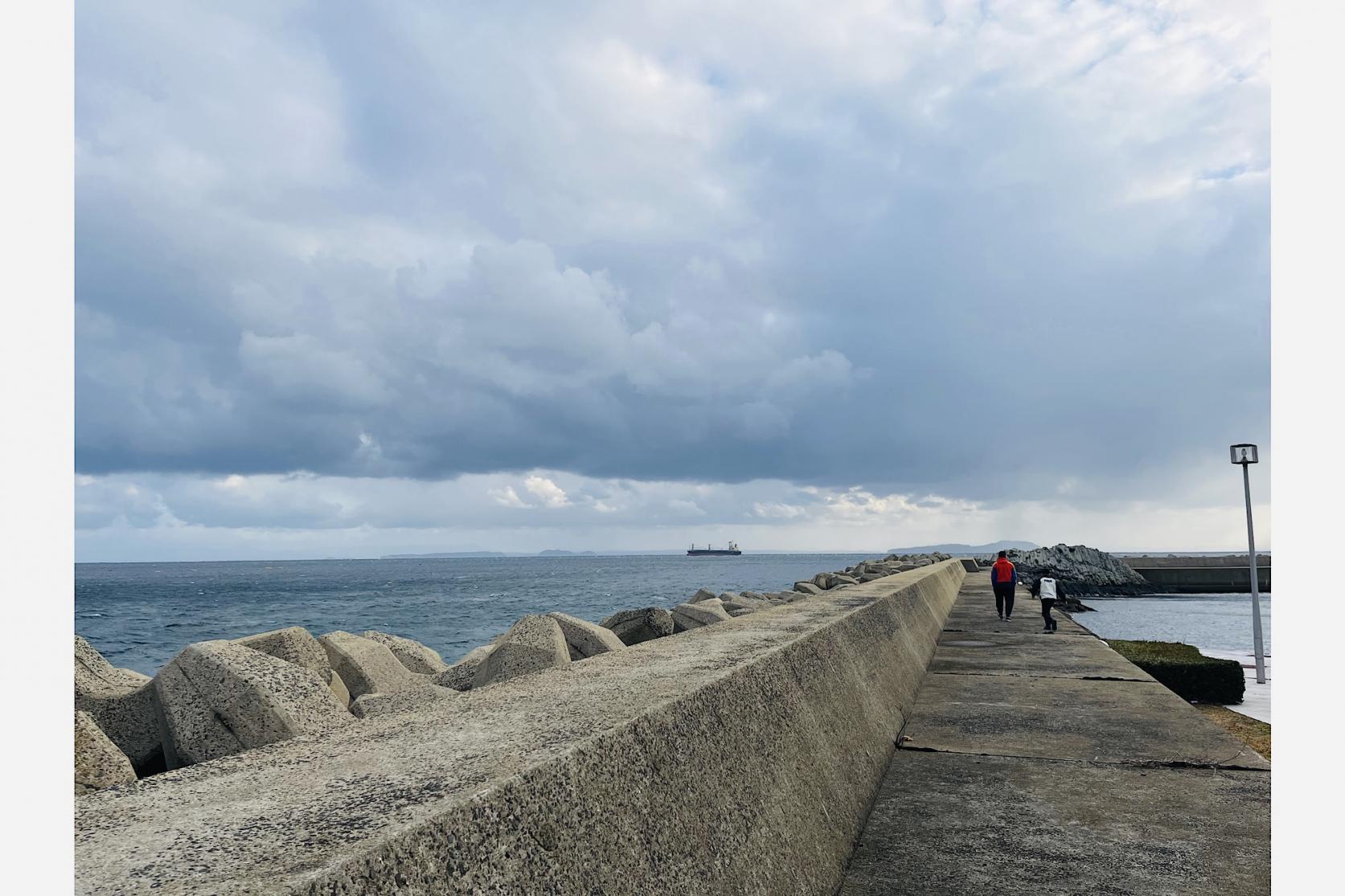 そのまま海辺まで降りていくと、広場と堤防があり、子どもたちが大好きな散歩コースになっています。