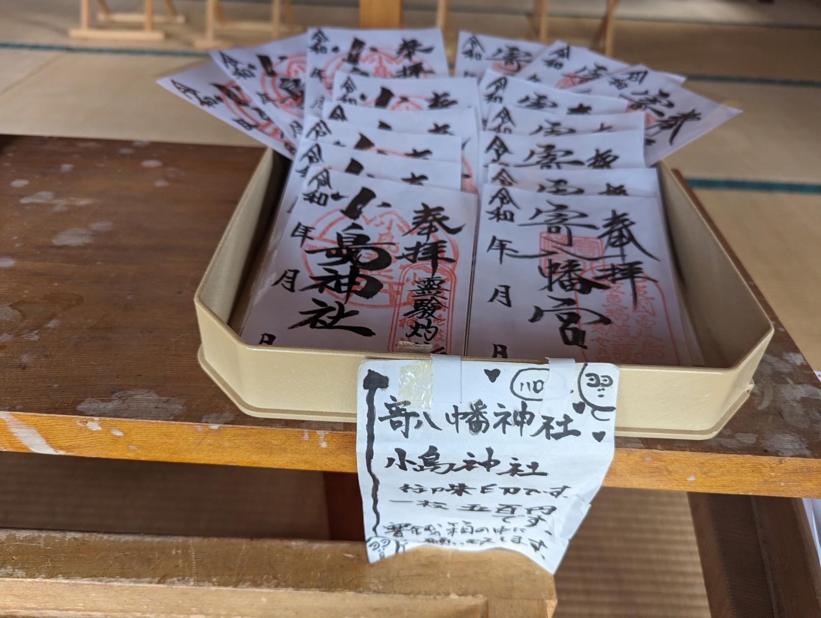 しかし、簡単には手に入りません。きちんと事前に干潮時間を調べて渡れたとしても、小島神社境内では御朱印帳をゲットすることができません。