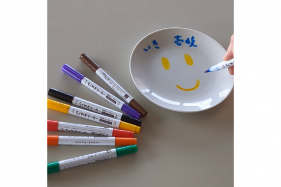 素焼きの器に陶芸用のペンを使って絵や文字を自由に描きます。