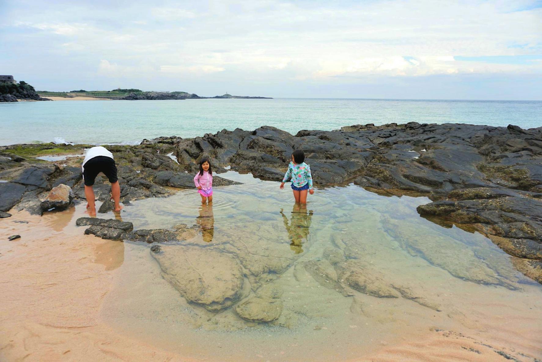ひとしきりテント内を満喫した後は、遊びの時間。ここグランビーチでは、希望すればSUP(スタンドアップパドル)やシーカヤック、ダイビングなども体験できますが、我が家の子どもたちは磯遊びを選択。